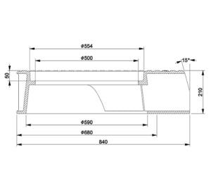 550/50 D400 3366018-N is a rectangular kita jaw frame for a round blind cover 3366021-N or grating 3366022-N. The frame is designed for Nordic conditions, in accordance with standard EN 124-2:2015, manufactured from grey cast iron EN-GJL-200 and is classified under Load Class D400.