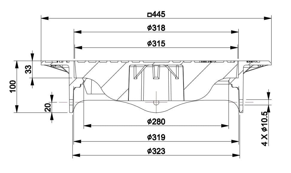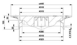 315-series Normal mahole cover set 3366066/45-N consists of a floating, square frame 3366066-N and a lockable, round blind cover 3366045-N. The set is designed for Nordic conditions, in accordance with standard EN 124-2:2015, manufactured from ductile iron EN-GJS-500/7 and is classified under Load Class D400.