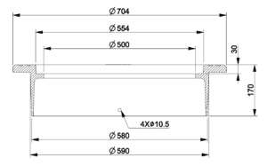 550/30-series 3366073-N is a floating type, rounded frame for rounded blind cover (3366074-N) or grating (3366075-N). The frame is designed for Nordic conditions, in accordance with standard EN 124-2:2015, manufactured from grey cast iron EN-GJL-200 and is classified under Load Class D400.