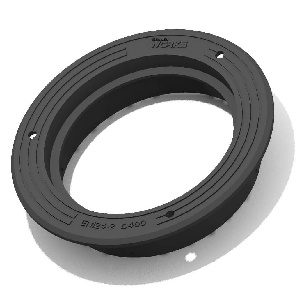 550/50-series 3366020-N is a floating type, round frame for round blind cover 3366021-N or grating 3366022-N. The frame is designed for Nordic conditions, in accordance with standard EN 124-2:2015, manufactured from grey cast iron EN-GJL-200 and is classified under Load Class D400.