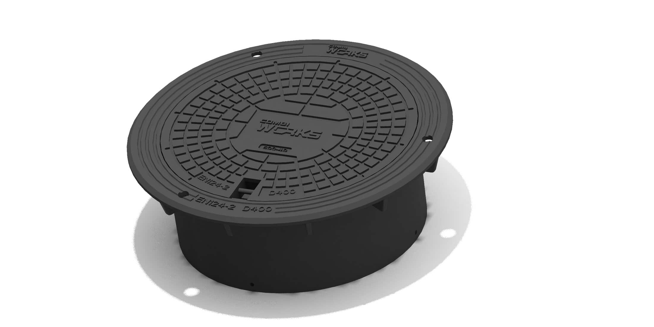 600/40 D400 3366005/77-N consists of a floating, round high frame 3366005-N and blind cover 3366077-N. The set is designed for Nordic conditions, in accordance with standard EN124-2:2015, manufactured from grey cast iron EN-GJL-200 and is classified under Load Class D400.