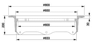 630-series Waterproof frame 3366129-N is a floating type, round frame for a bolt lockable, round blind cover 3366130-N. The frame is designed for Nordic conditions, in accordance with standard EN 124-2:2015, manufactured from ductile iron EN-GJS-500/7 and is classified under Load Class D400.
