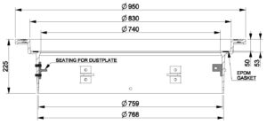 Frame is compatible with a round lockable blind cover 3366179-N and aluminum dust plate.