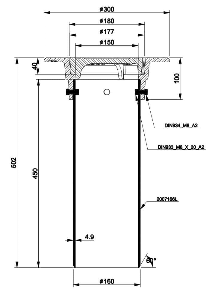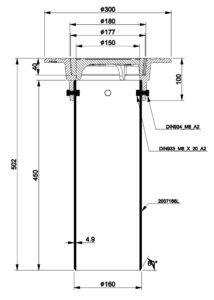 160/200-series Telescope set 2001605C-N consists of a floating, round frame 3366051-N, round blind cover 3366052-N and a 160/450 mm telescope pipe. The set is designed for Nordic conditions, in accordance with standard EN 124-2:2015, frame and blind cover are manufactured from ductile iron EN-GJS-500/7 and classified under Load Class D400.