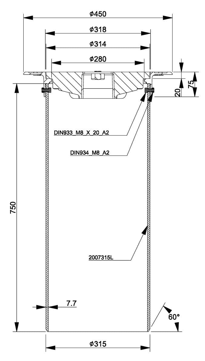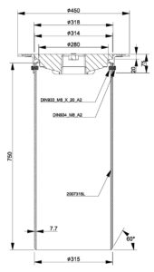315-series Telescope set 2003188G-N consists of a floating, round frame 3366131-N, round blind grating 3366133-N and a 315/750 mm telescope pipe. The set is designed for Nordic conditions, in accordance with standard EN 124-2:2015, frame and blind cover are manufactured from ductile iron EN-GJS-500/7 and classified under Load Class D400.