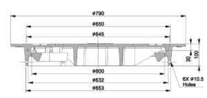 630-seeria Normal komplekt 3366126/7-N koosneb ujuvast ümmargusest raamist 3366126-N ja lukustatavast ümmargusest umbluugist 3366127-N. Komplekt on sobiv Põhjamaade tingimustesse, vastab standardile EN 124-2:2015, valmistatud keragrafiitmalmist EN-GJS-500/7 ja klassifitseerub koormusklassi D400.