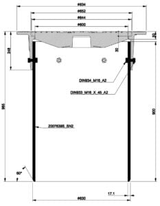 630-seeria HD/ASTV teleskoobikomplekt 2006368C koosneb ujuvast ümmargusest 3366165/6-N kaevuluugikomplektist, DN630 x 17,1mm x 0,9m SN2 teleskooptorust ning M16 poldidest ja mutritest. Komplekt on sobiv Põhjamaade tingimustesse, vastavab standardile EN 124-2:2015. Raam ja luuk on valmistatud hallmalmist EN-GJL-200 ja klassifitseerub koormusklassi D400 alla, toru on PE-st ning poldid ja mutrid A2 roostevabast terasest.