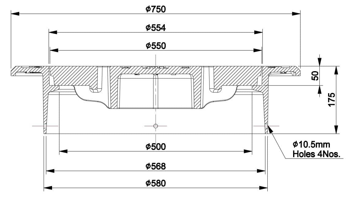 550/50 D400 harmaavalurautainen pyöreä kehys 3366020-N ja sadevesikansi 3366022-N