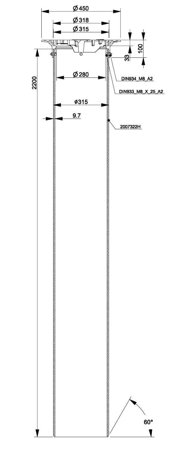 315 Teleskooppisetti 220 cm Normaali lukittuva runko ja sadevesikansi.
