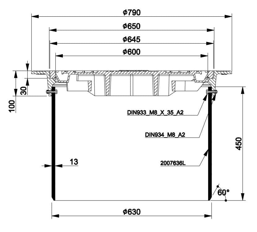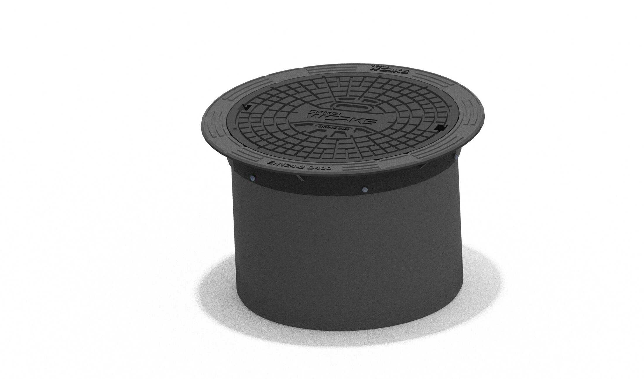 630-sarja 45 cm:n teleskooppisetti 2006305C-N pyöreä kehys 3366126-N ja lukkiutuva umpikansi 3366127-N.
